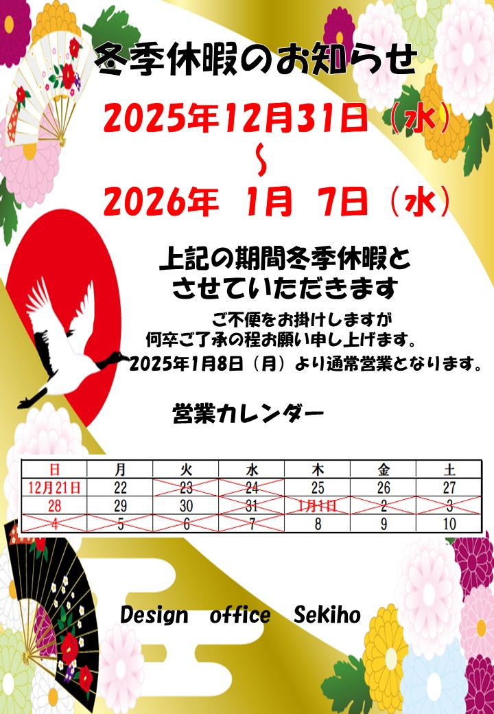 年末年始休業のお知らせ