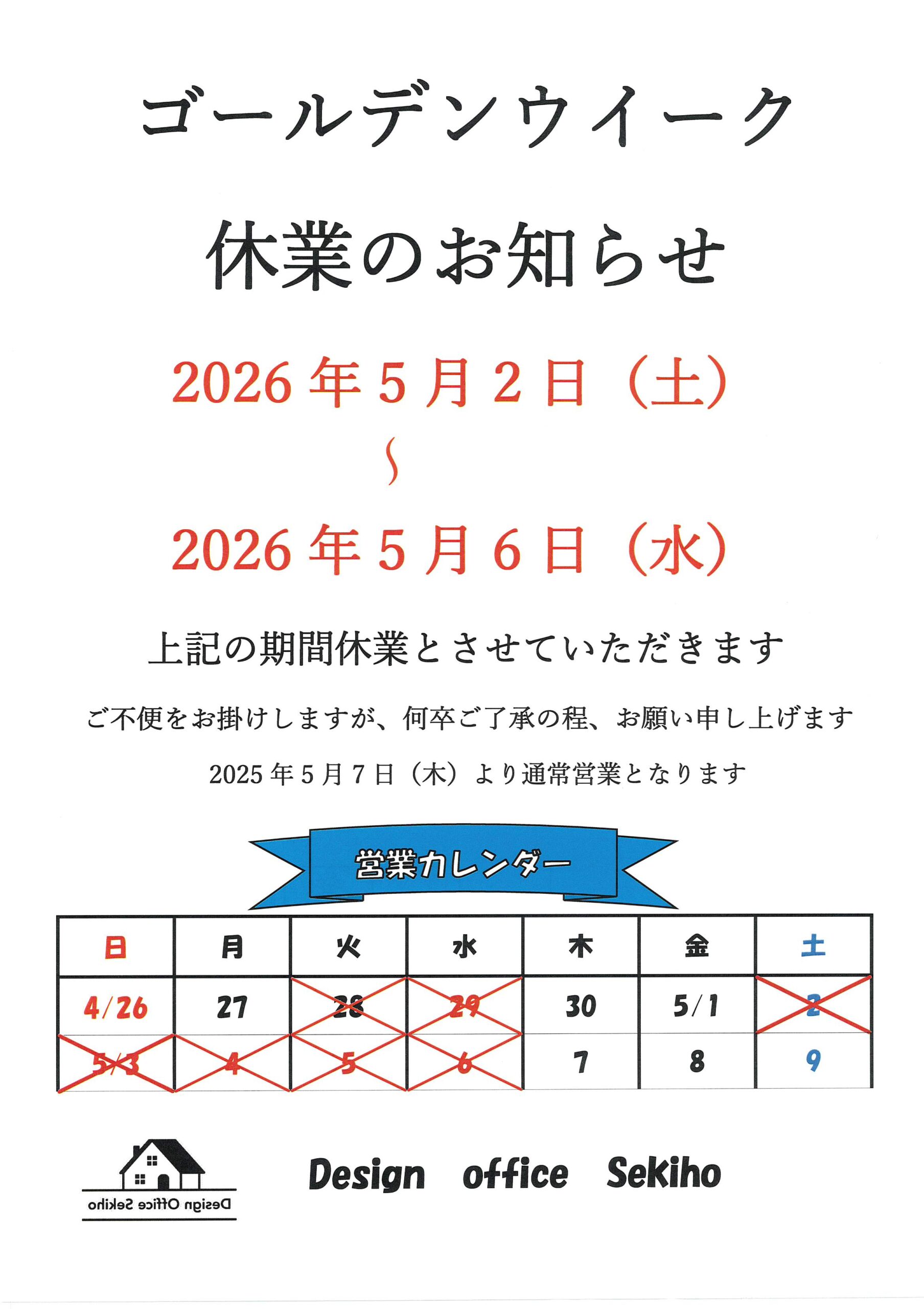ゴールデンウイーク休業のお知らせ